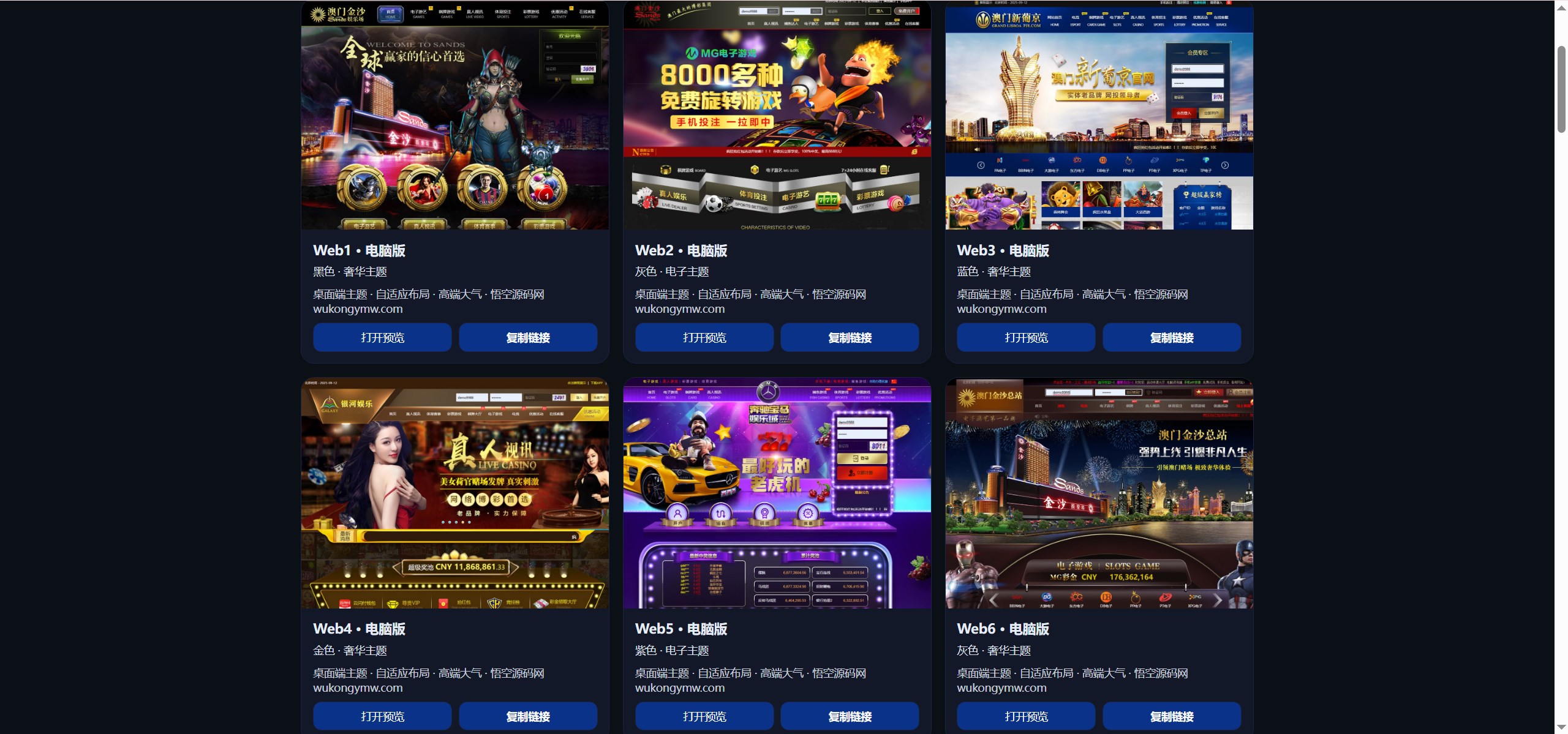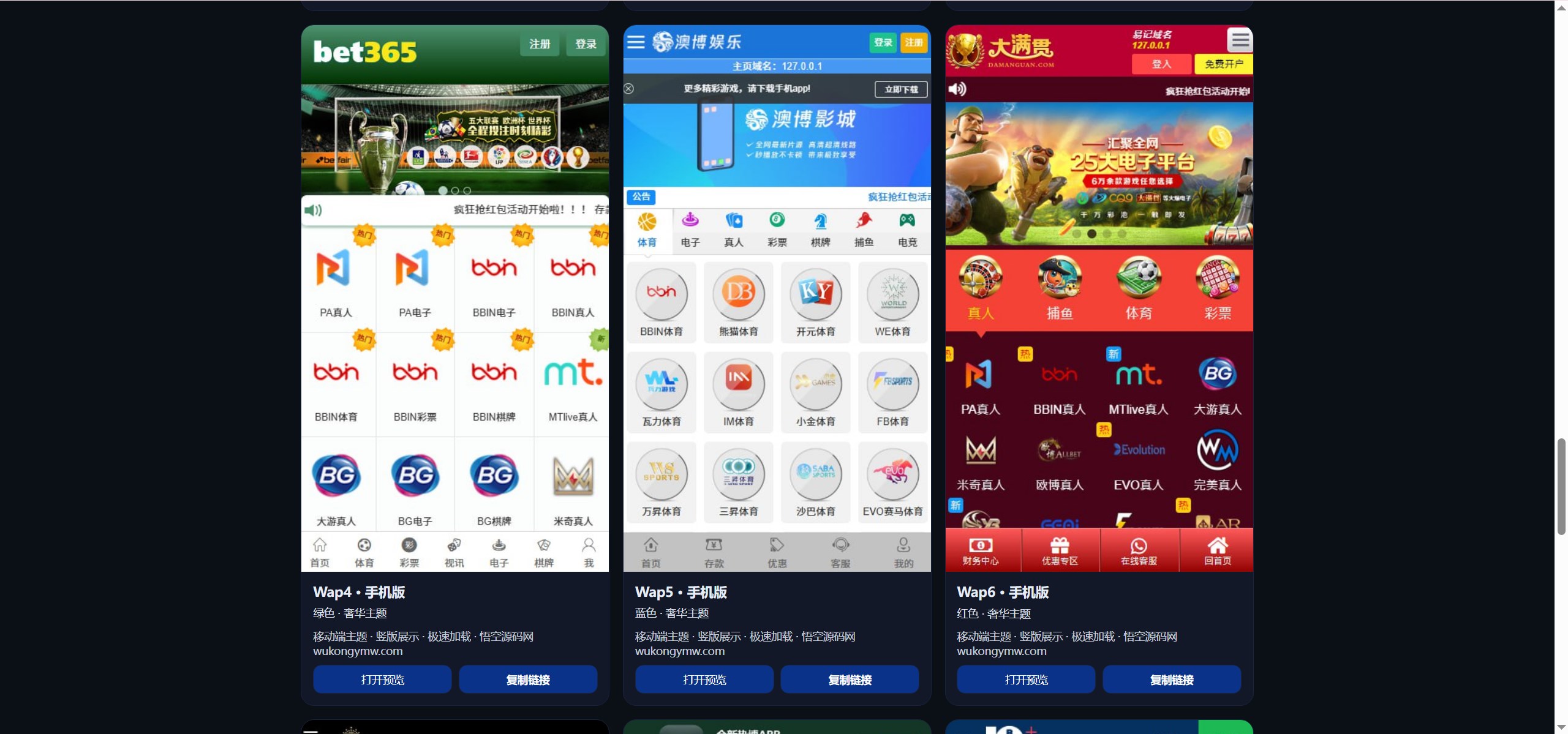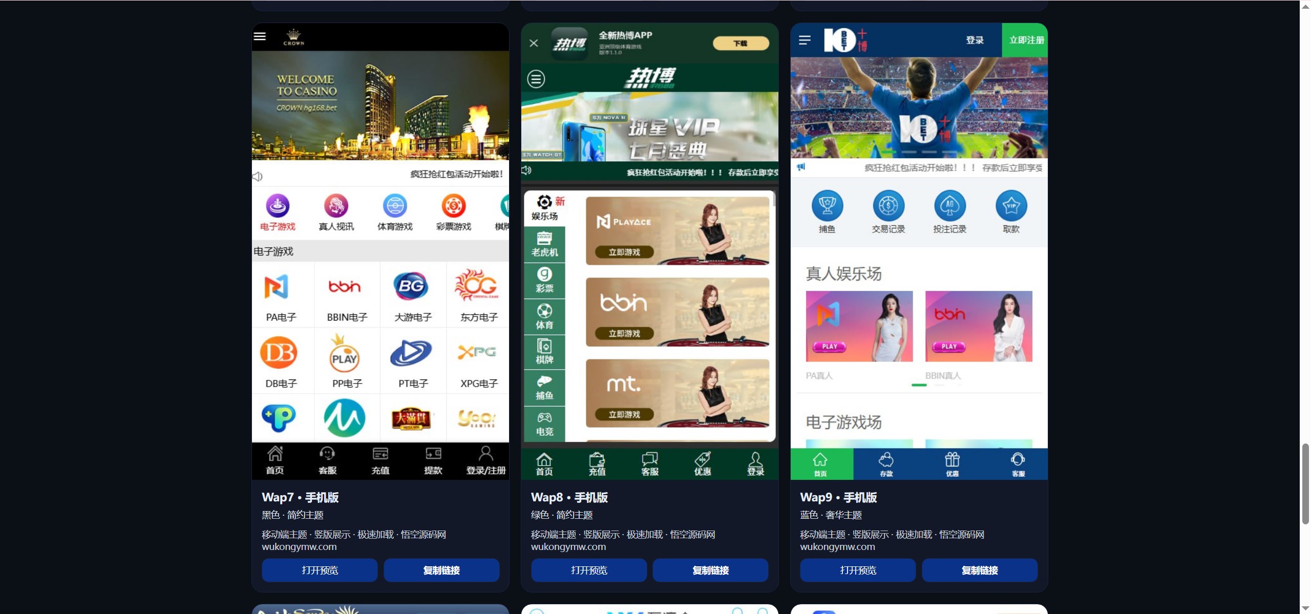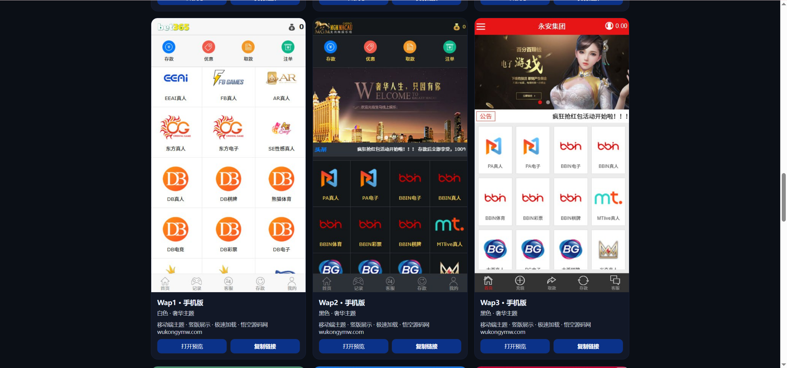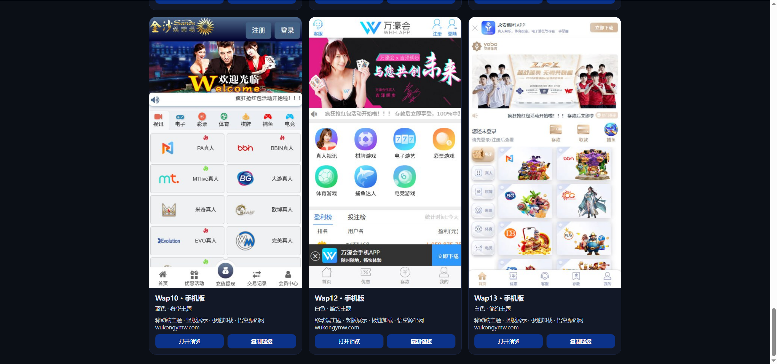 游戏现在集成了100多家,PC端模版一共有19个,手机端模版有12个(看的演示站只开放了这些,实际以搭建后的为准)