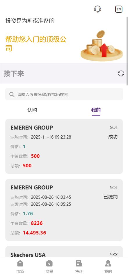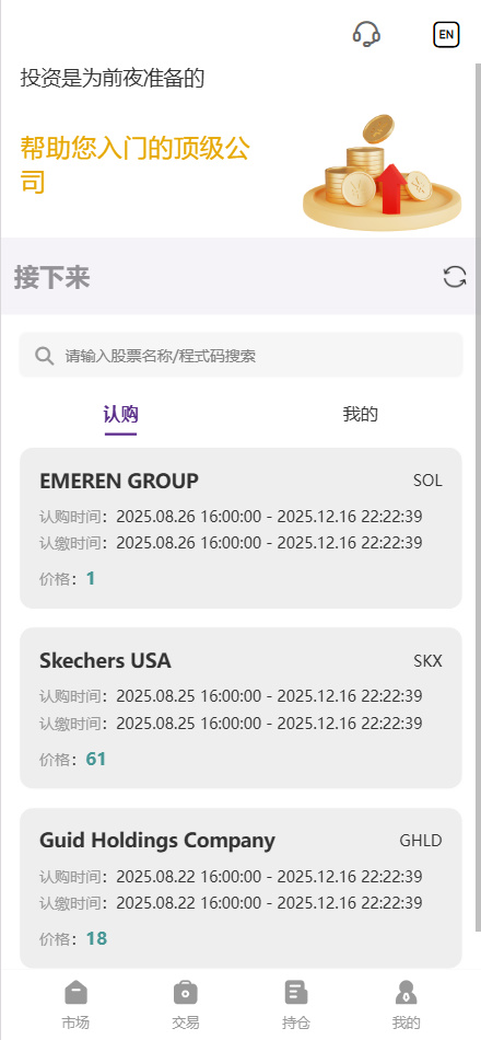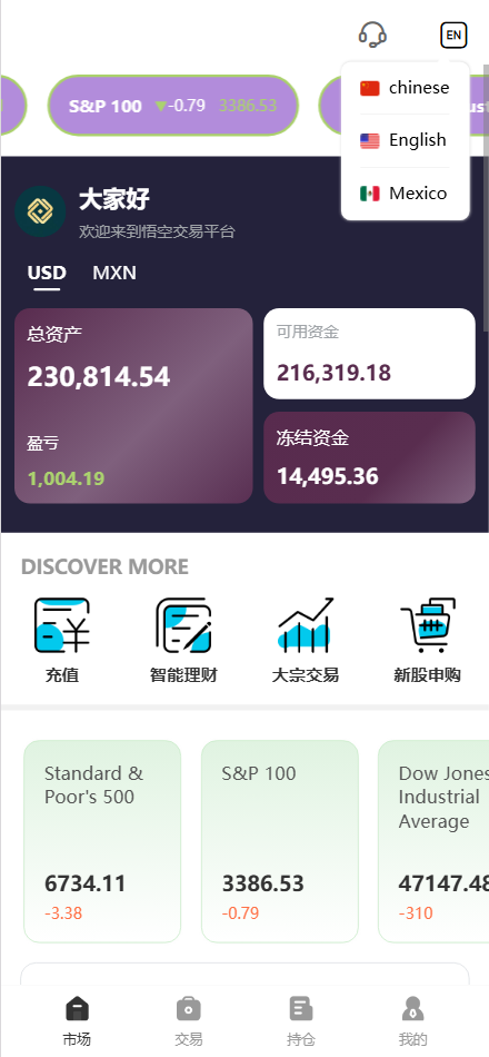 MXN多语言美股墨西哥股票源码/大宗交易申购+新股申购+智能投资理财+自定义多语言管理/前端uniapp纯源码+后端PHP