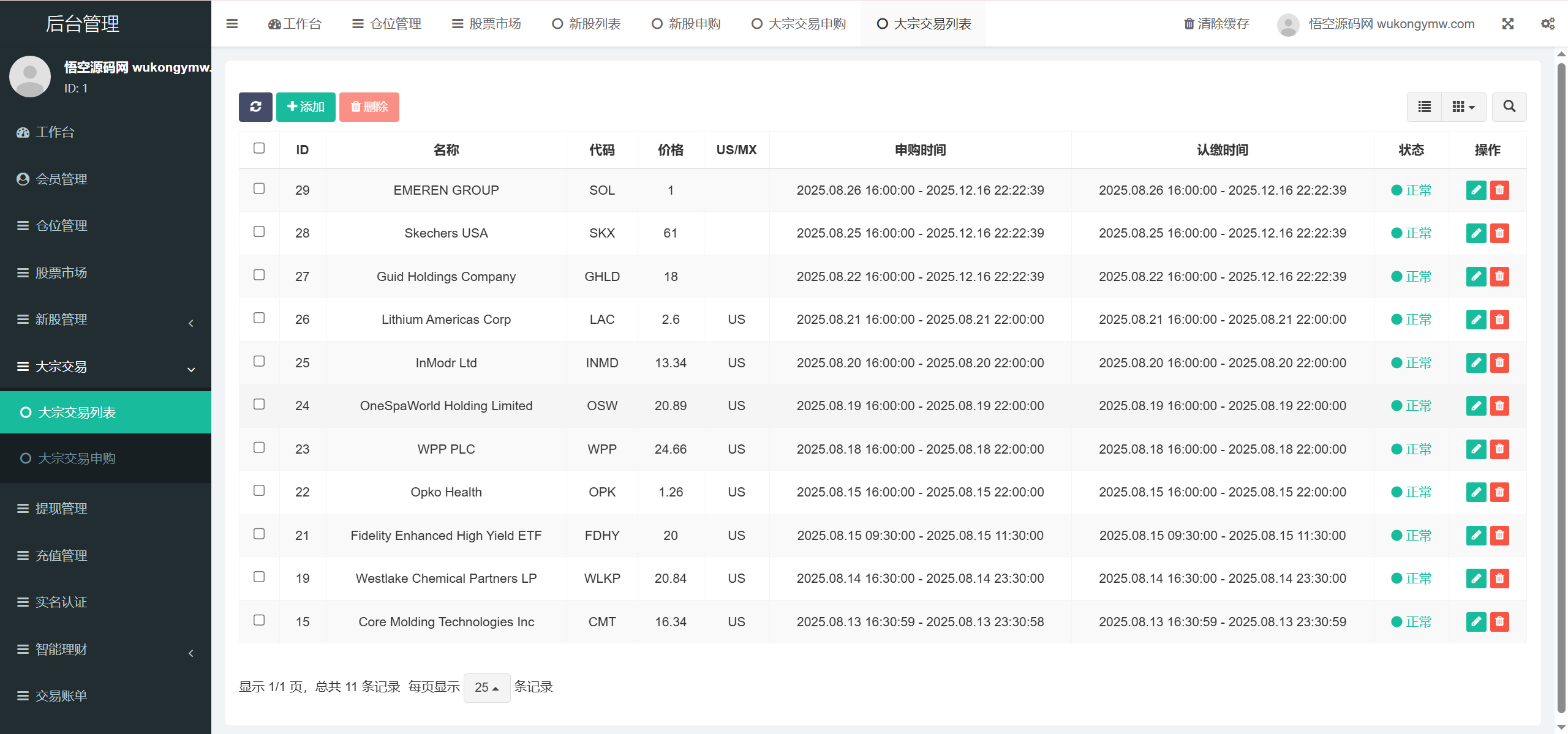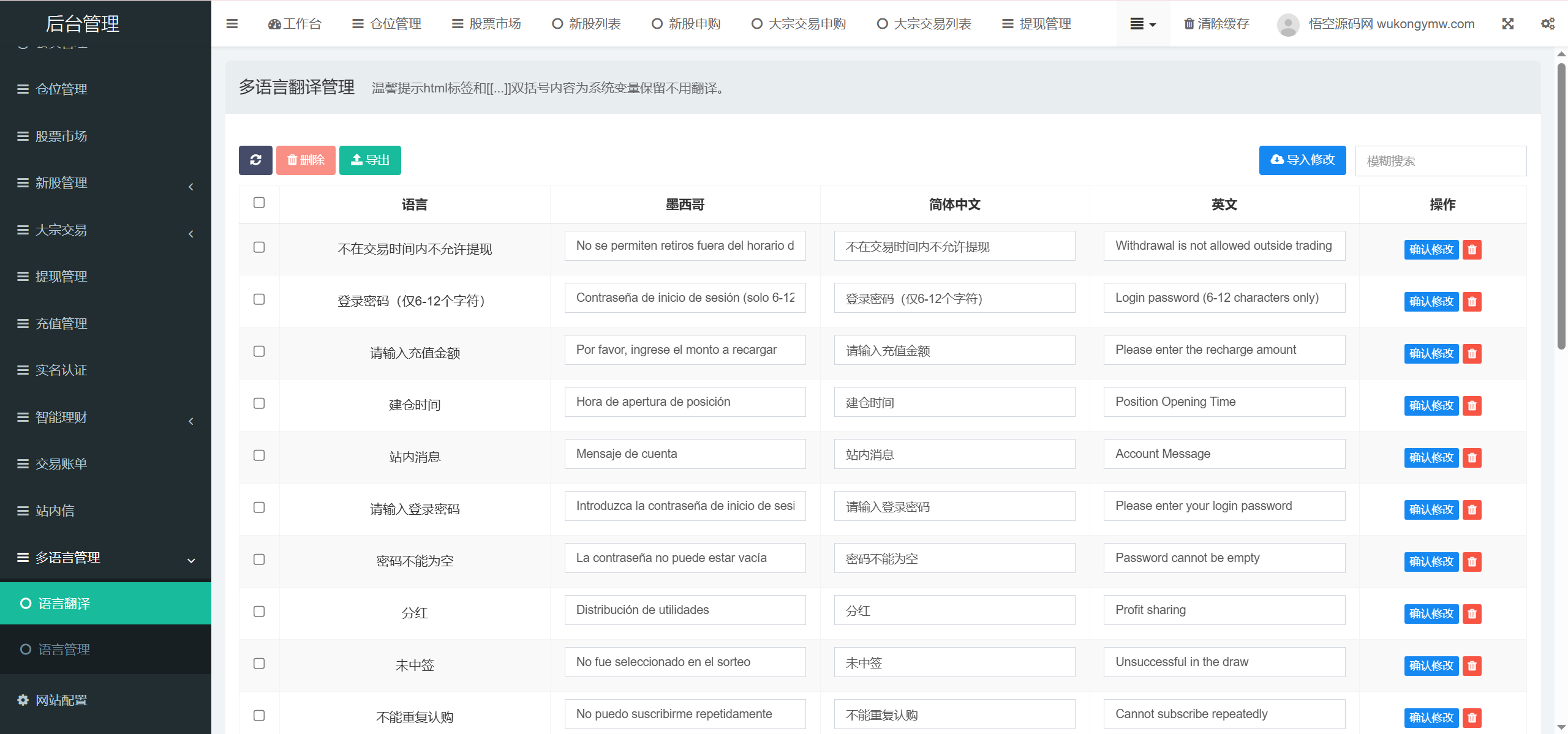 大宗交易还有申购功能,后台可以自定义添加多语言,使用xlsx表格可以批量导入