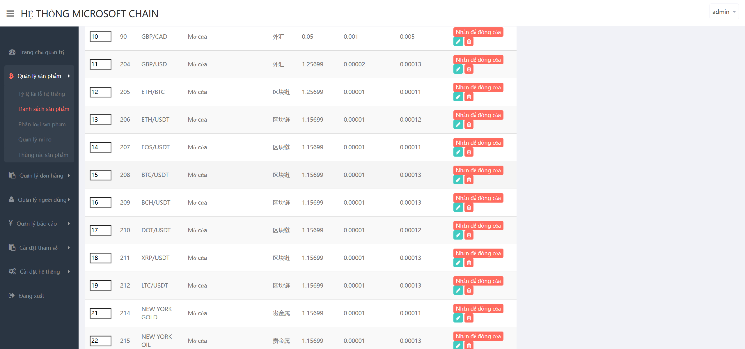 ETH/BTC、ETH/USDT、EOS/USDT、BTC/USDT、BCH/USDT、DOT/USDT、XRP/USDT、LTC/USDT