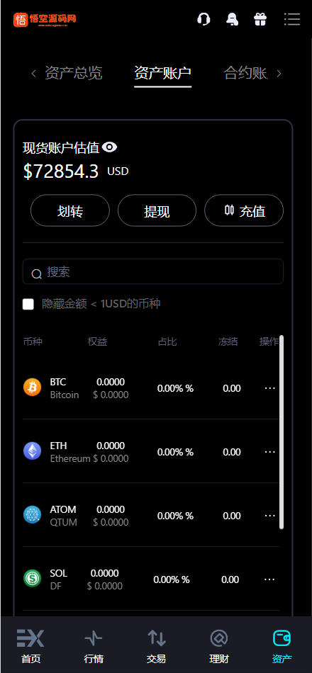 资产管理:充值提币、账户划转、多账户(现货/合约/期权/法币/理财)