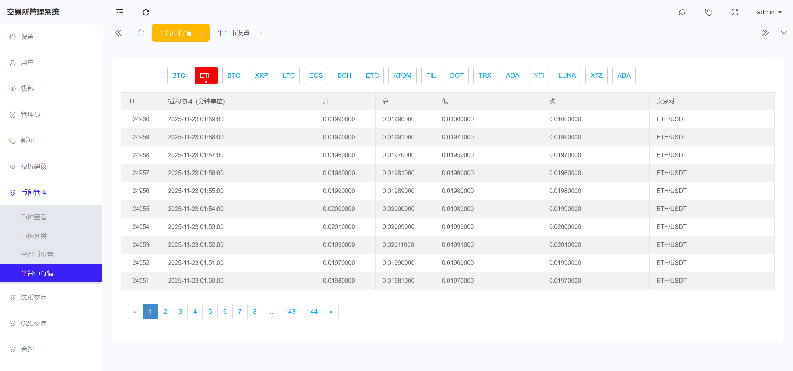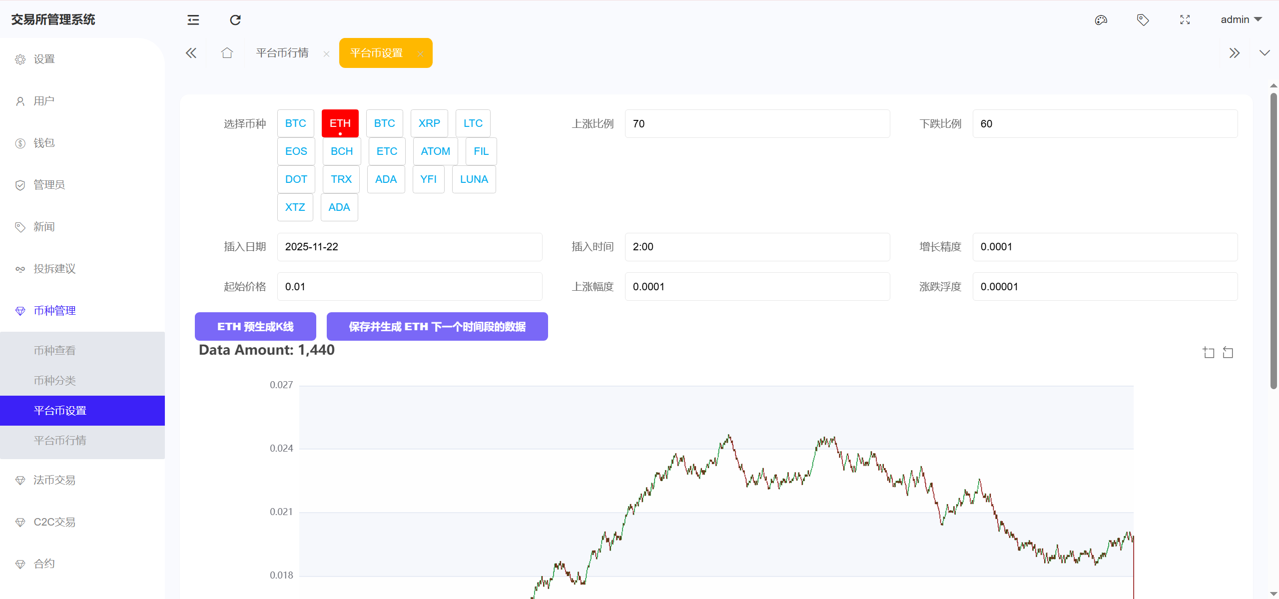 后台有平台币K线,应该是可以添加平台币的,还有币种控线的功能,不过我没测试,这套我给一个简单的启动脚本就行了,其他计划任务自己在根目录下面输入命令 php artisan 进行查看,因为有点多