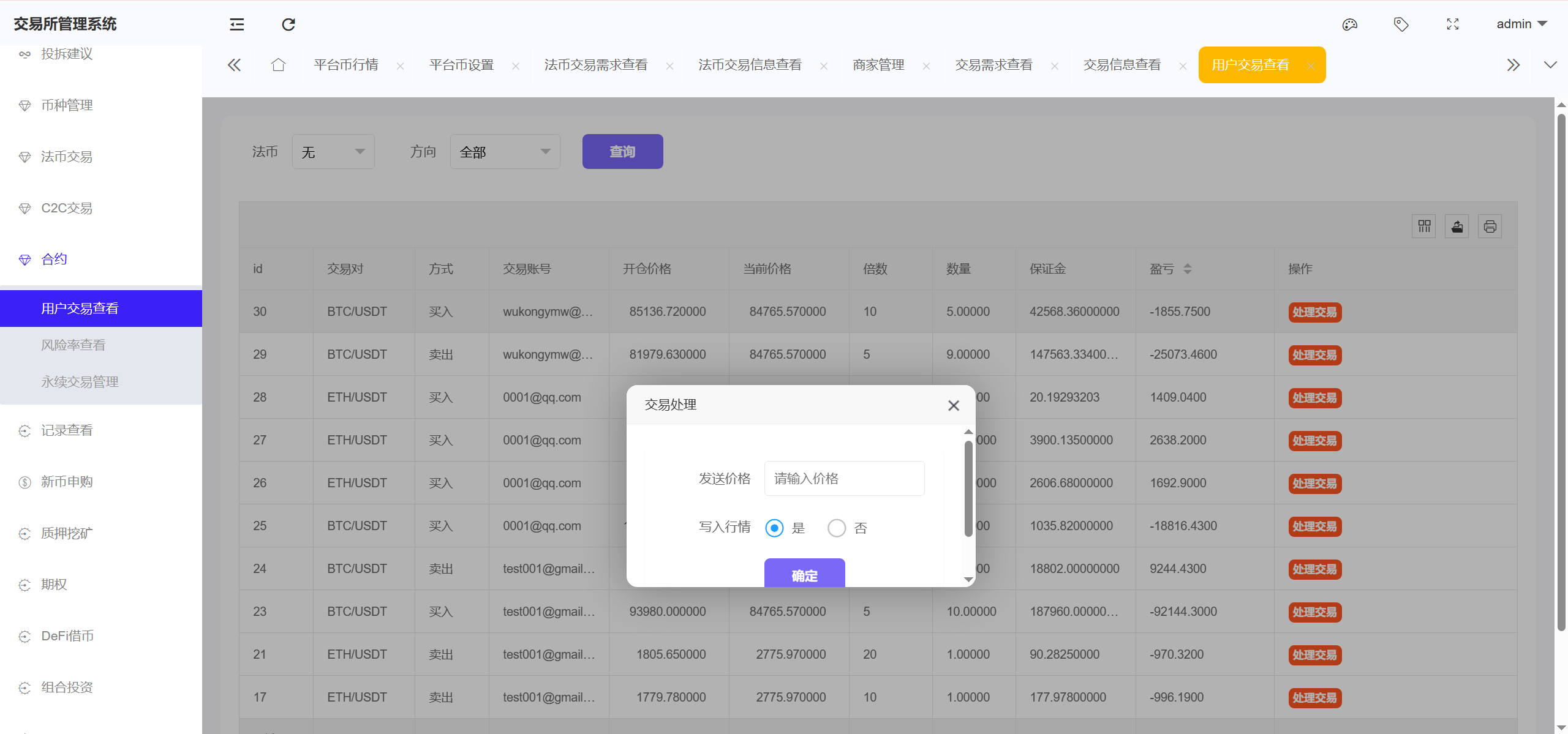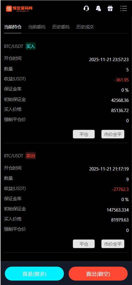 大部分功能都是测试过的,合约可以正常结算,虚拟货币的K线行情也是正常的,外汇、美股、期货、ETF(公用事业股指数)这几个的k线行情需要自己修复,当然还有很多BUG也需要修复。。。