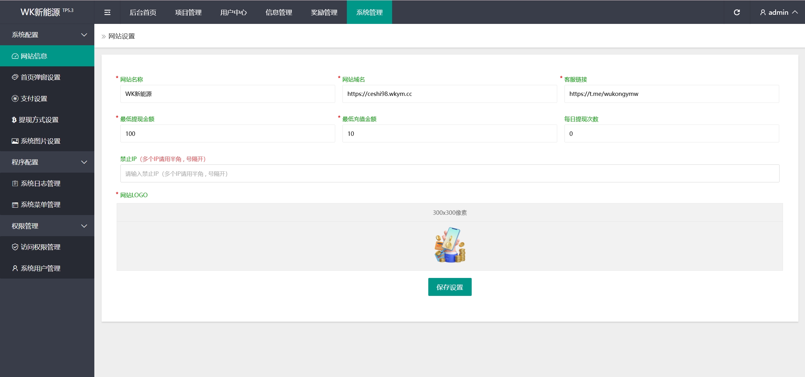 后台: https://ceshi98.wkym.cc/admin