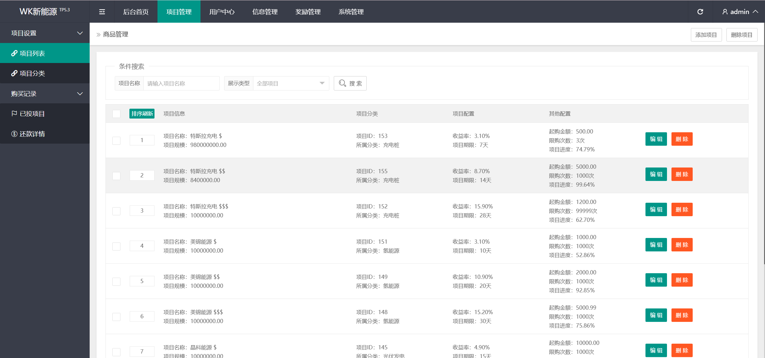 产品目前有充电桩、氢能源、光伏发电这3种,可以添加/修改成任意产品,后台也可以设置产品的多语言参数