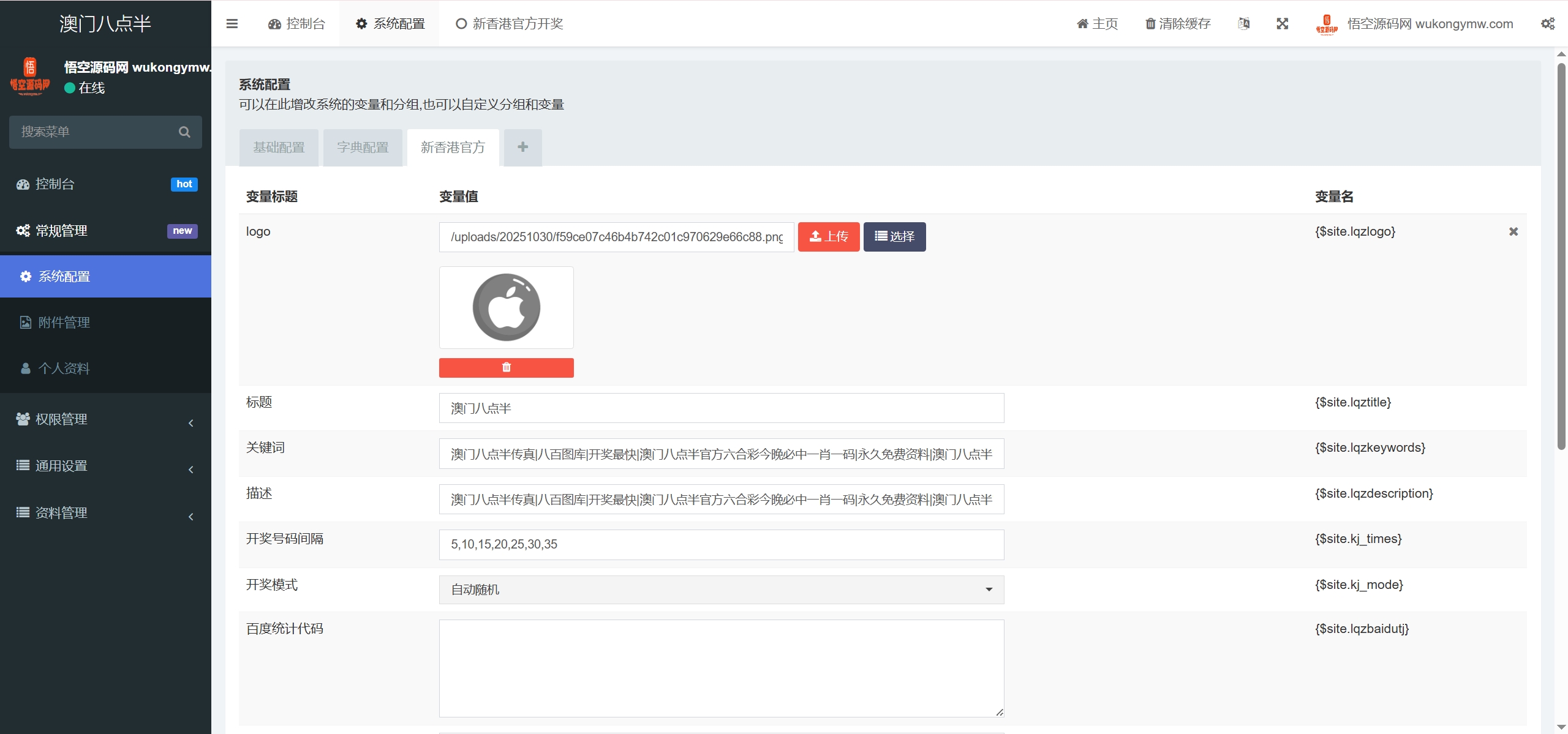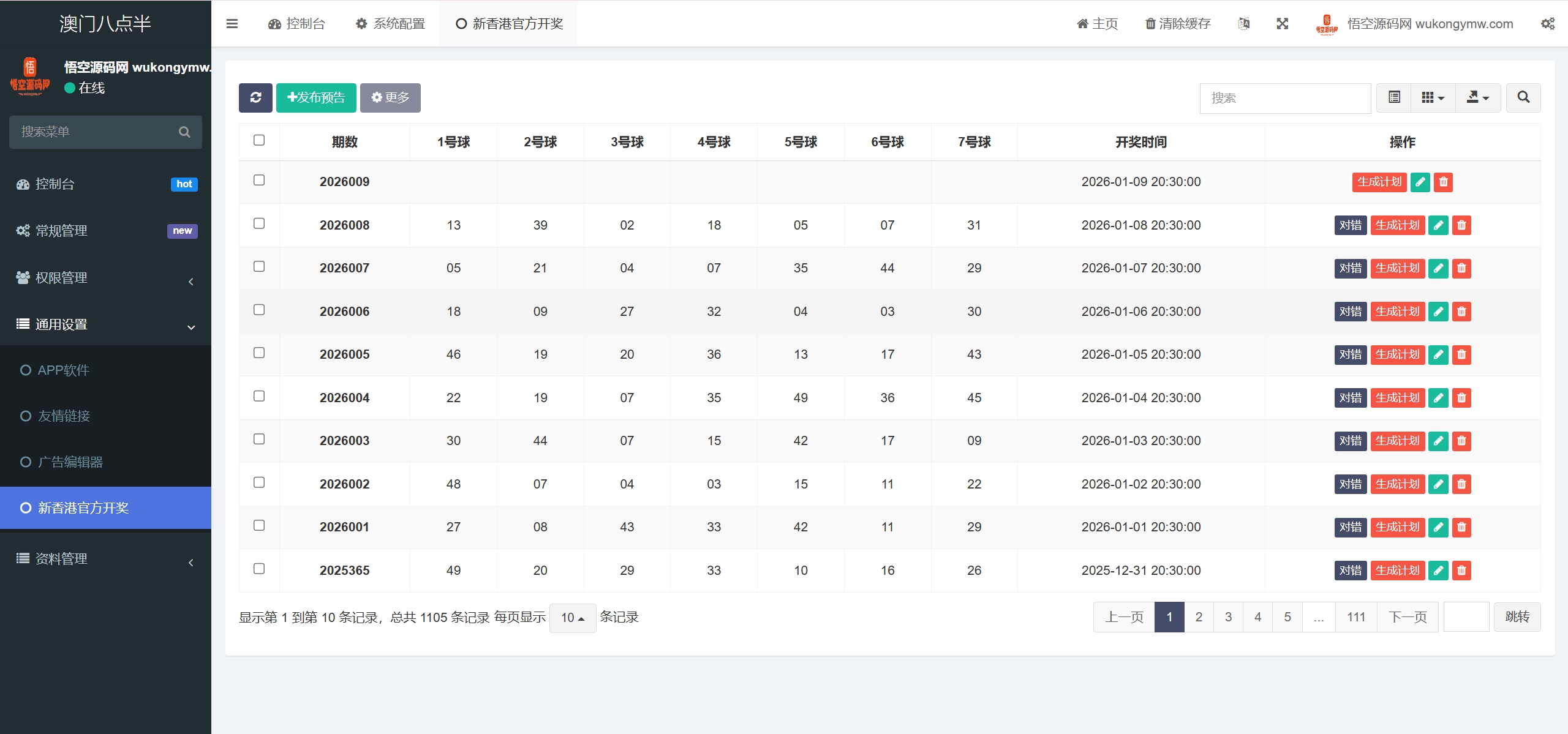 有4个彩种,澳门八点半是私彩,后台可以设置自动开奖也可以手动开奖,可以自动生成对错预测等资料