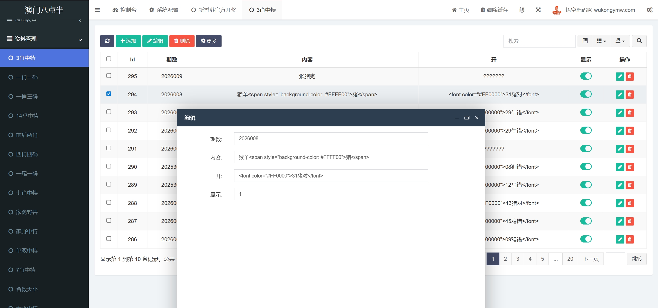 前端是html,后端fastadmin框架,全开源的,非常简洁的一套六合心水资料站源码,带开奖记录页面,手机端和PC端自适应