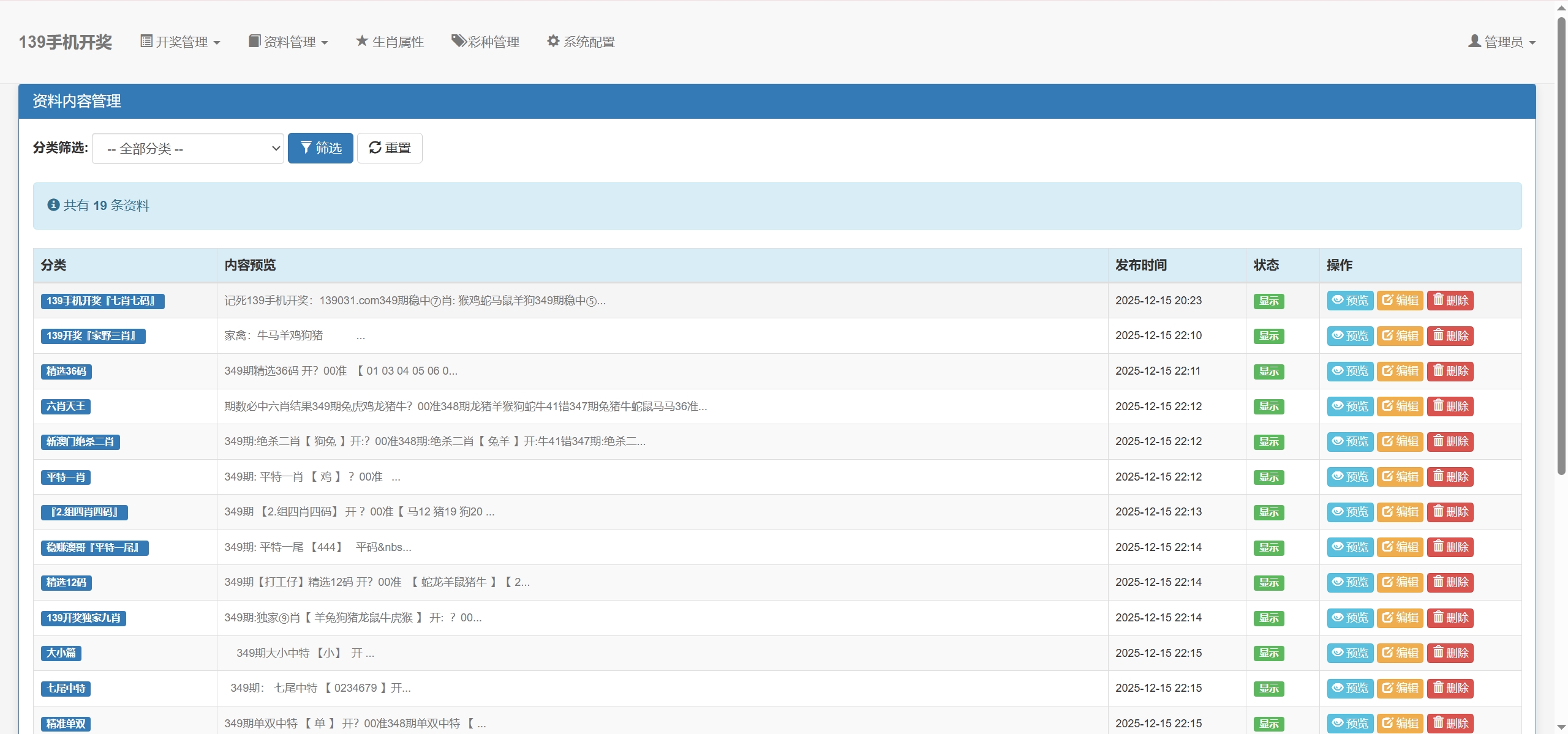 资料目前都是手动在后台修改的,如果要做成私彩自动生成资料可以联系我们二开,只有文字资料没有图库资料哦