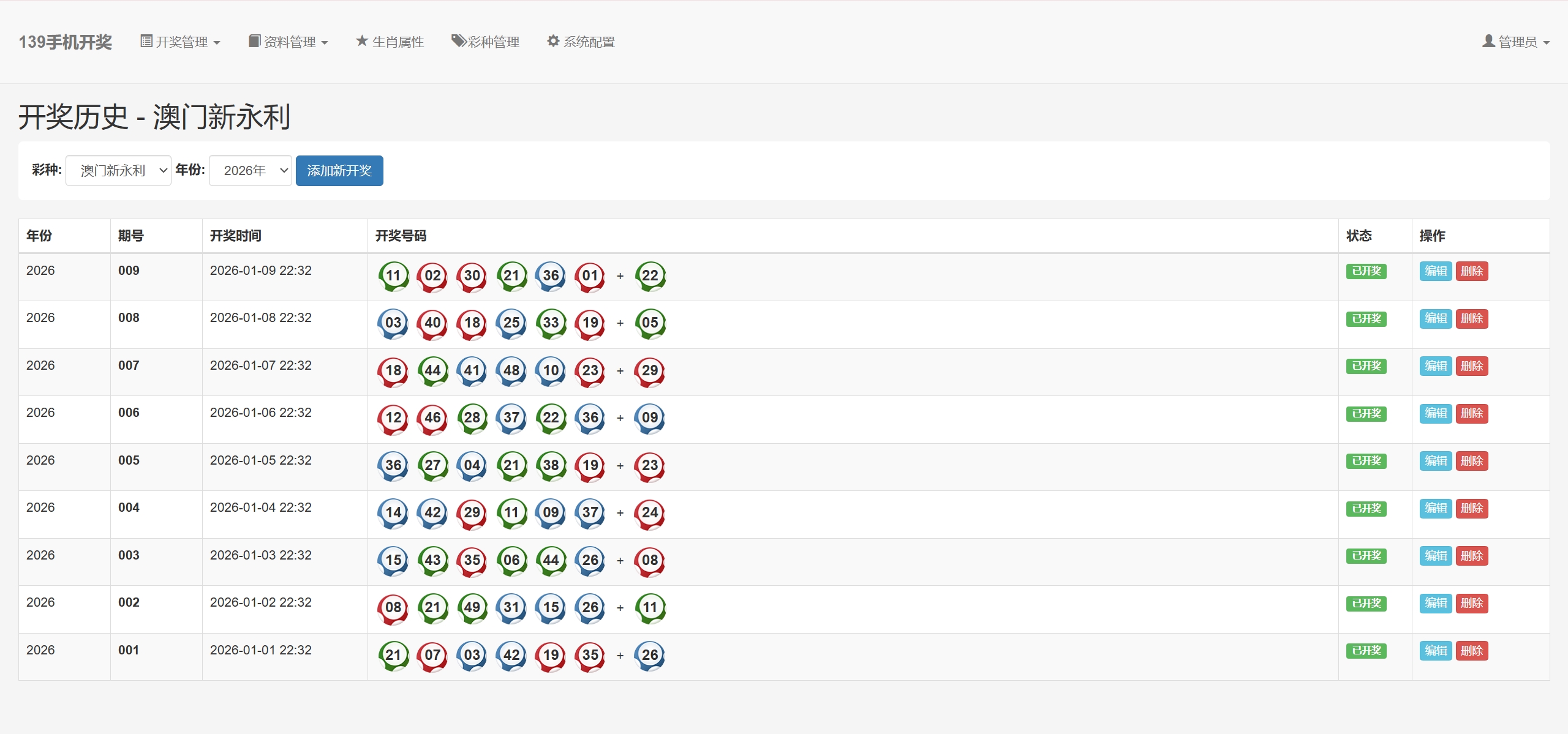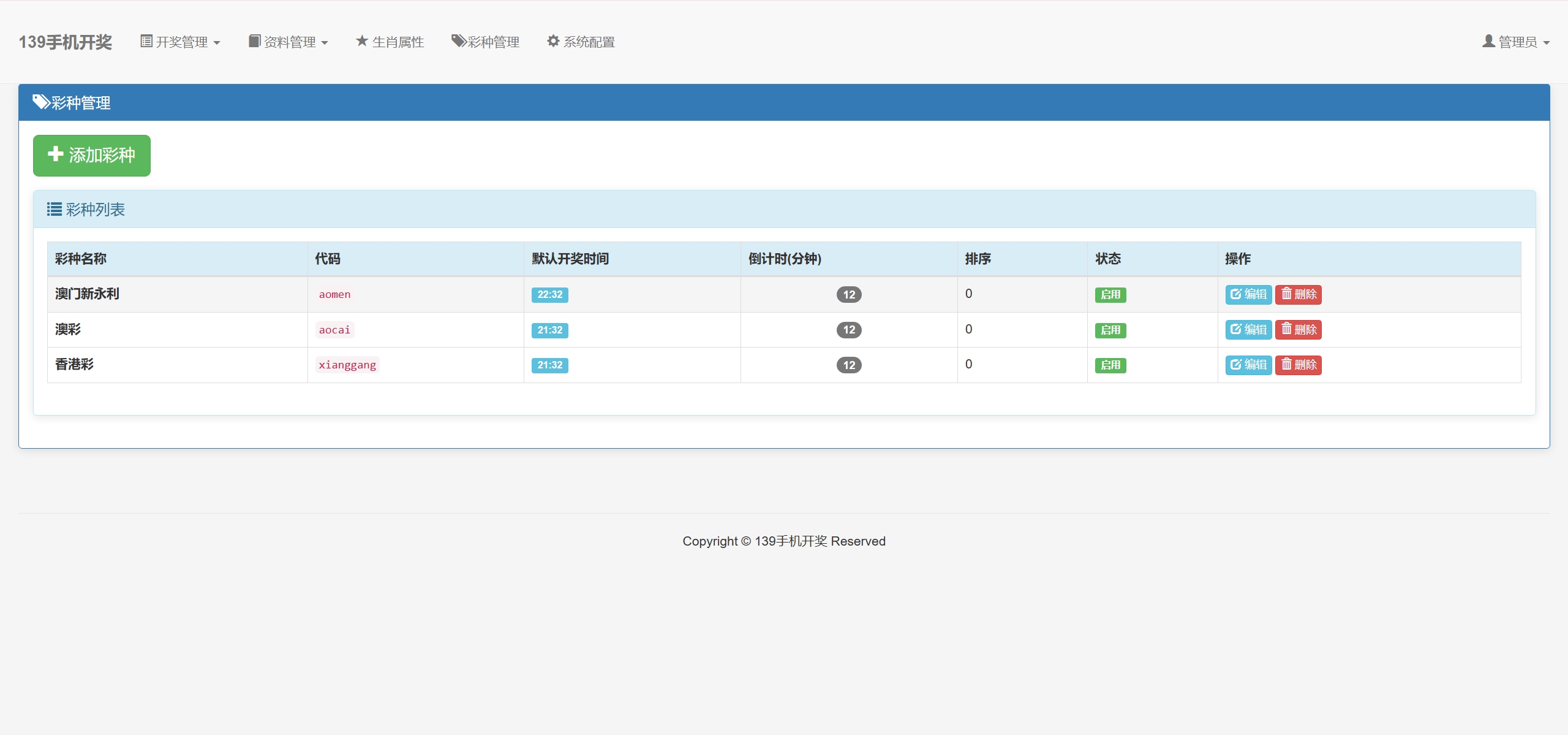 香港六合彩和澳门六合彩都是对接的开奖接口自动开奖,你也可以改成手动开奖和私彩一样在后台添加开奖,但是这样也没必要