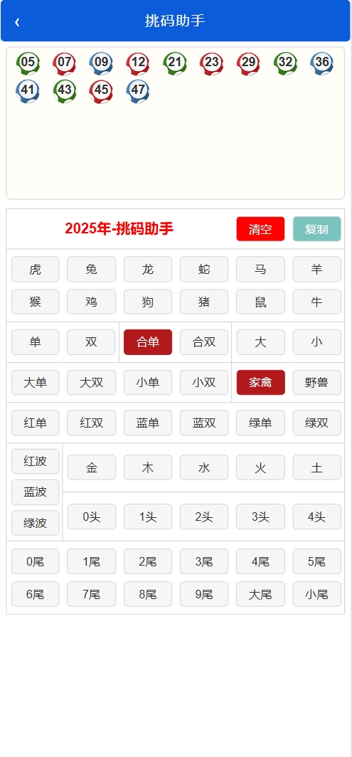 私彩还写了开奖记录页面、生肖属性页面,都是根据年份自动显示对应内容的,首页带有一个挑码助手工具,整个程序还是比较轻量化