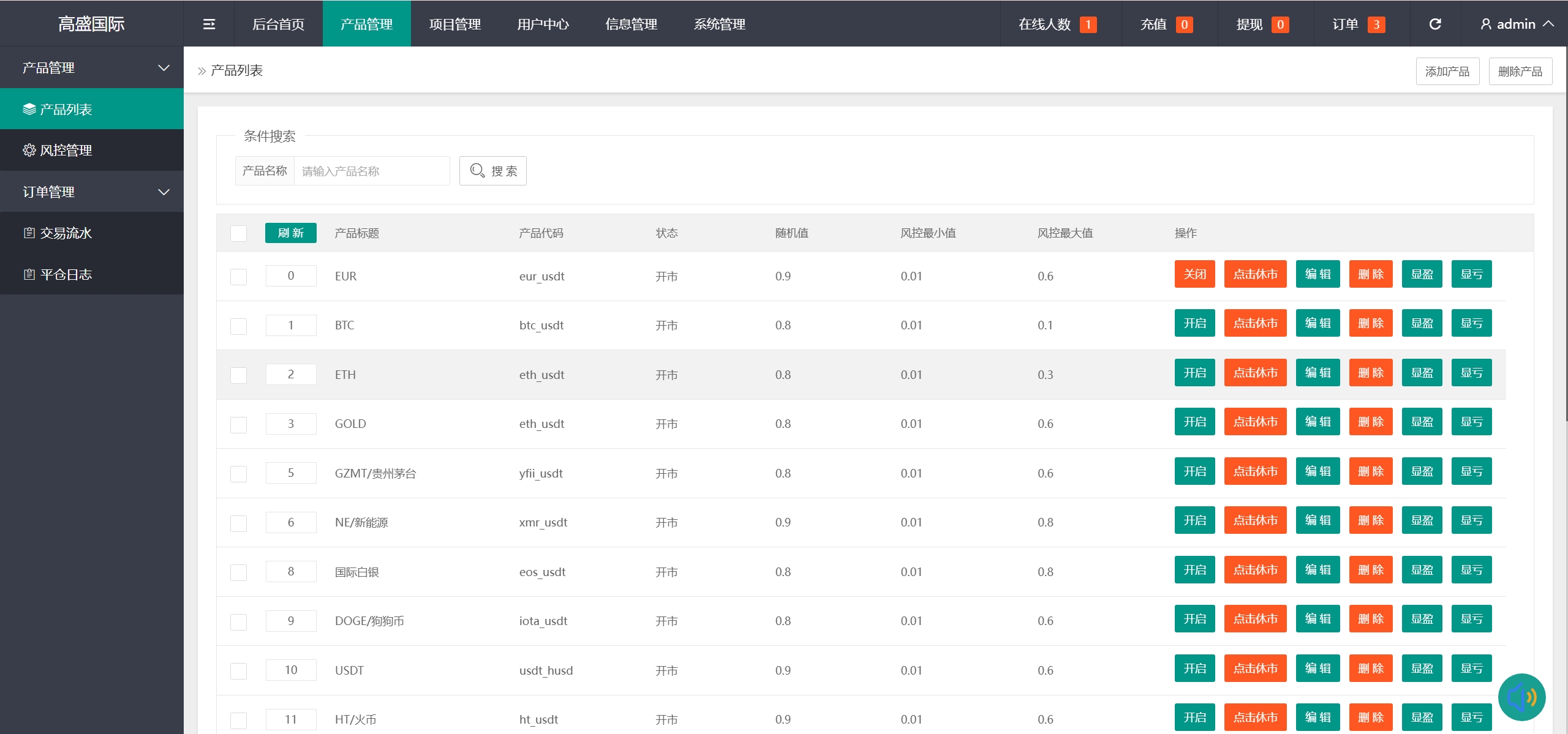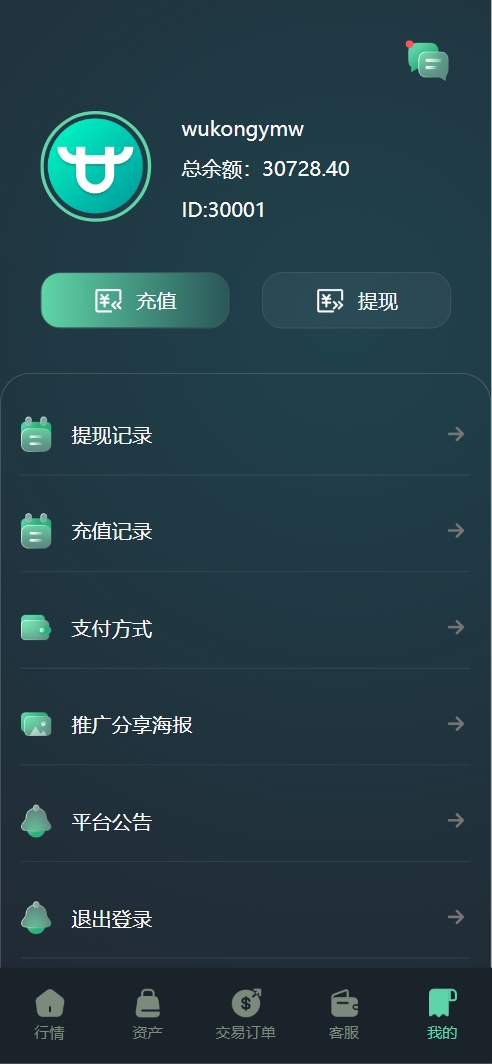 产品有贵金属黄金/白银/原油、虚拟货币BTC/ETH等,可以自己添加产品,用的是火币接口