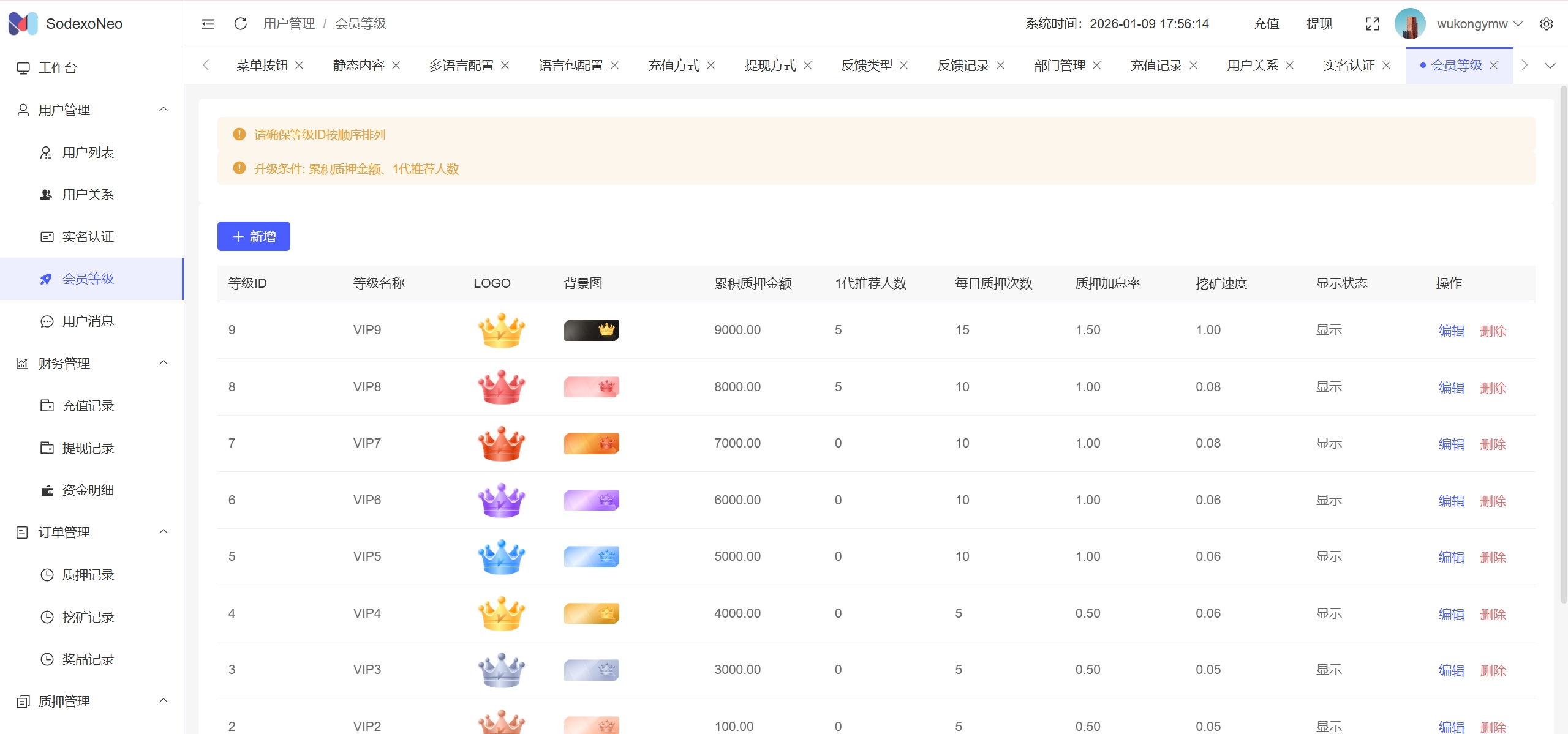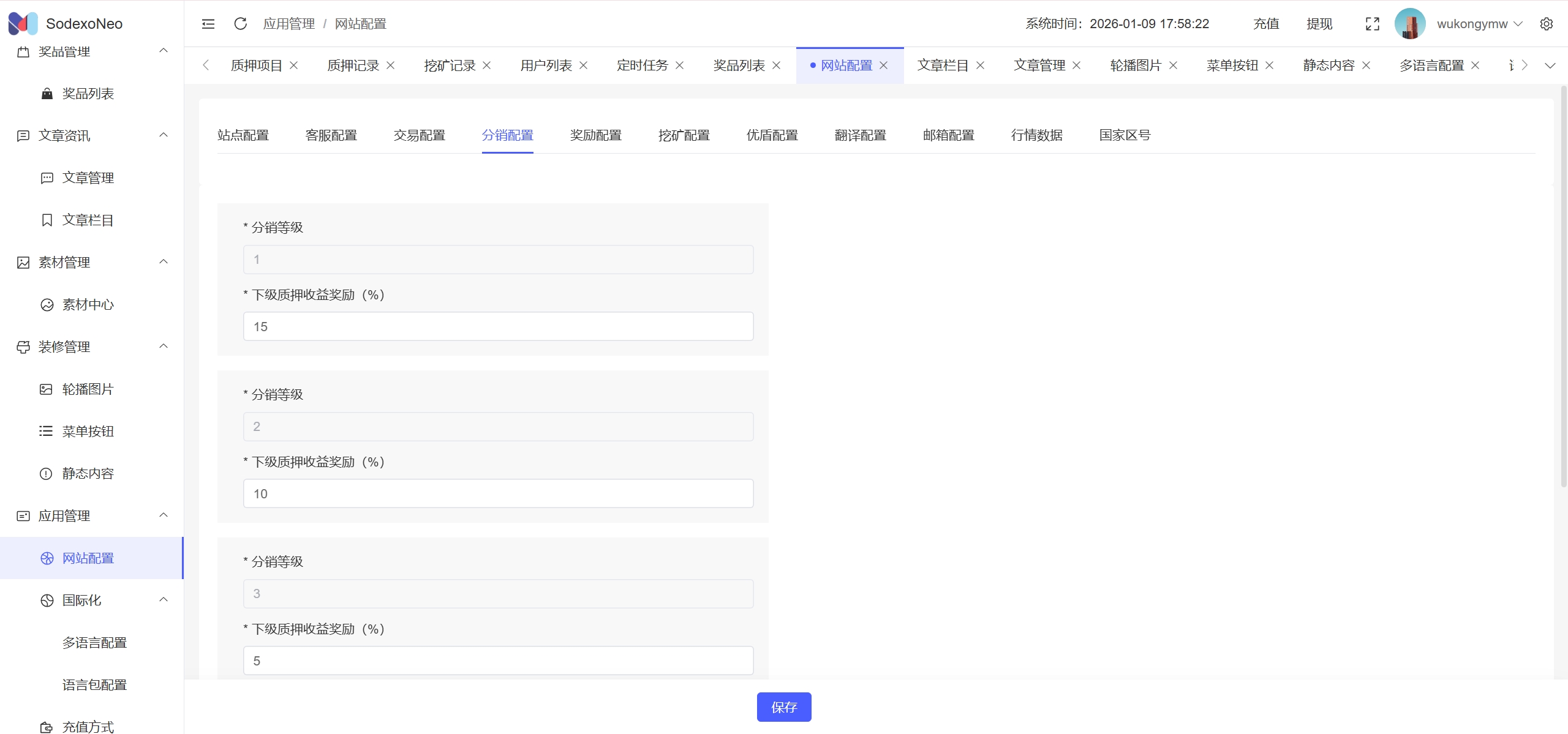 SodexoNeo多语言质押挖矿投资理财源码/5级分销+自动挖矿+自定义行情币/前端vue纯源码+后端PHP
