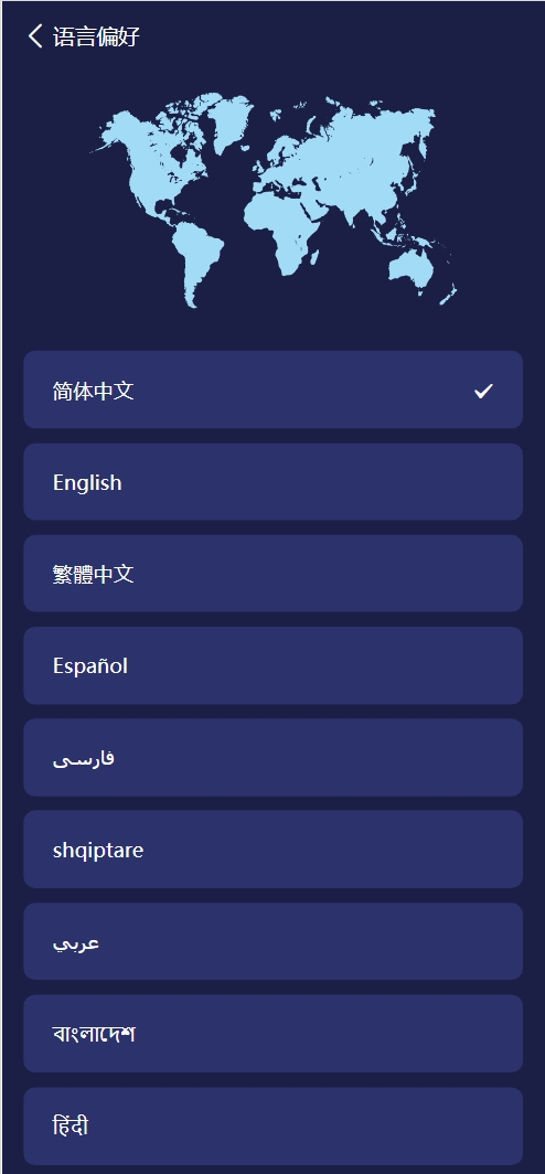 语言:19种,简体中文、英语、繁体中文、西班牙语、波斯语、阿尔巴尼亚语、阿拉伯语、孟加拉语、印地语、土耳其语、俄语、意大利语、葡萄牙语、泰语、法语、德语、韩语、日语、越南语
