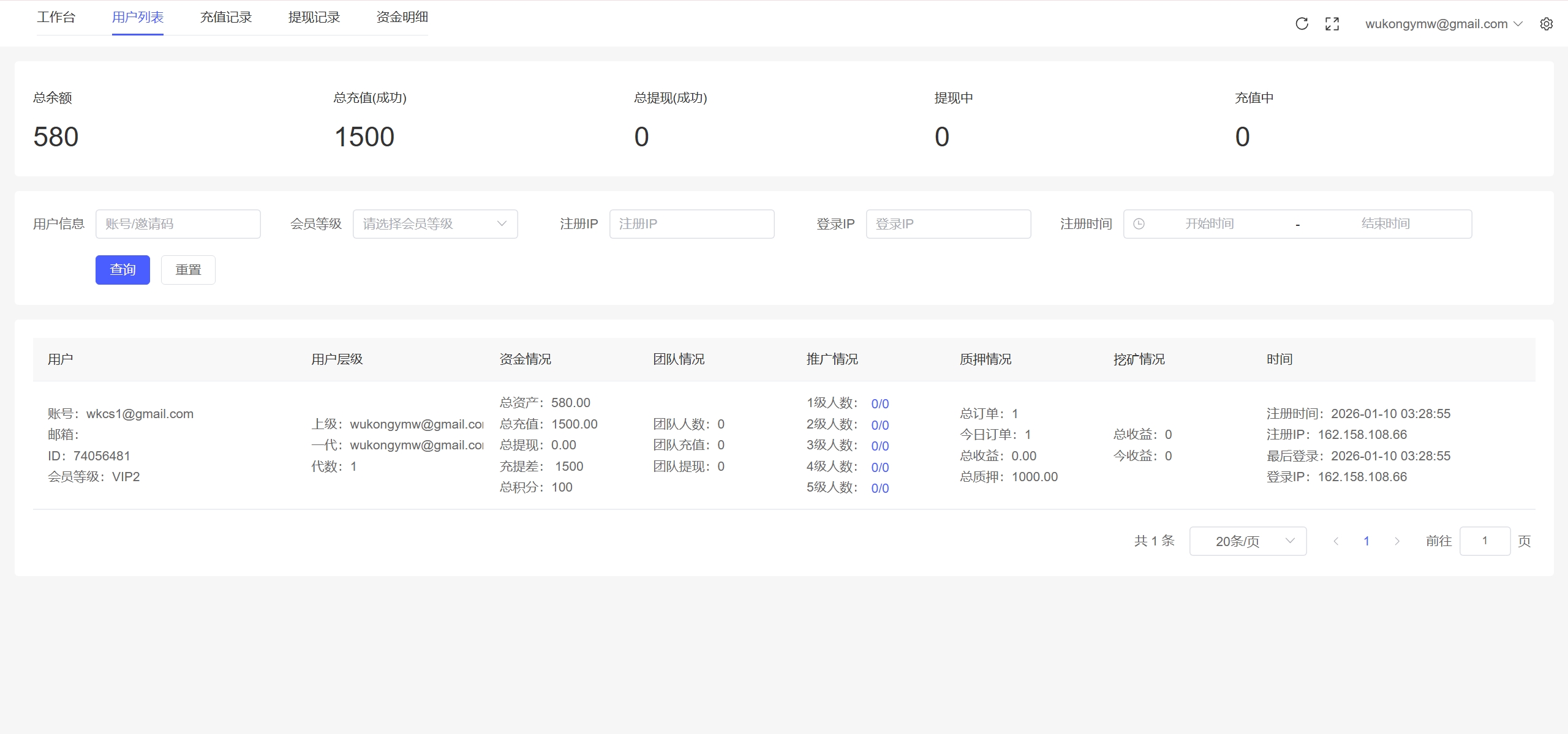 19、代理线功能,后端开启用户为代理,即可登录代理端查看代理下级用户情况