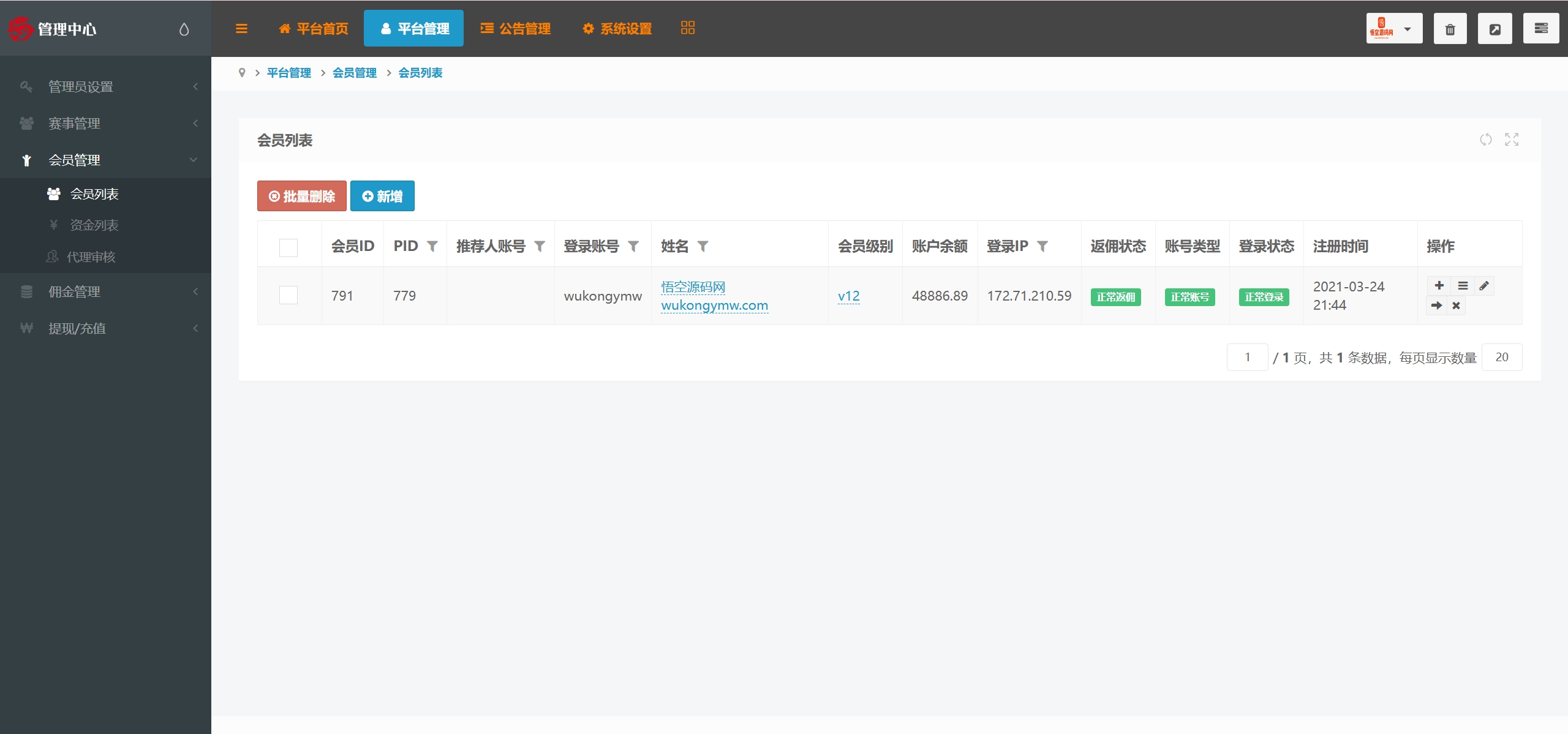 测试账号: wukongymw